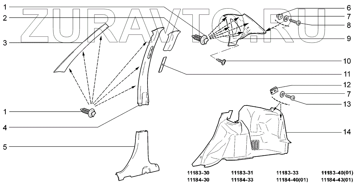 | 5 | 11180-5402125-00 | Обивка центральной стойки нижняя левая | Нет в продаже |