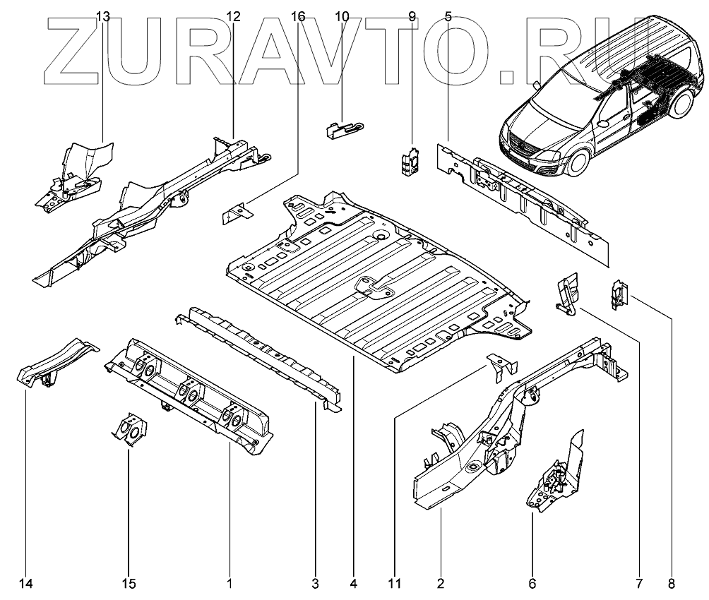 | 4 | 6001548783 | Задняя панель пола заднего | Нет в продаже |