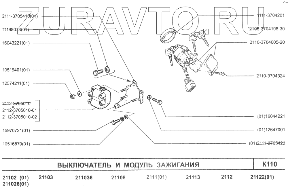 | 2110-3704005-20 | 2110-3704005-20 | Выключатель зажигания (комплект) | Нет в продаже |
